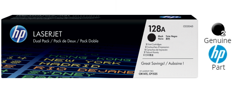 These CE320AD (CE320A, 128A) (2,000 Yield each) OEM HP toner cartridges will not void your machine's warranty and are backed by the manufacturer guarantee.