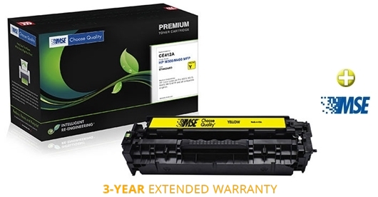 This MSE Premium remanufactured toner cartridge (Alternative for HP CE412A, 305A) (3,200 Yield) will not void your machine's warranty and is backed by a 100% quality and satisfaction guarantee for three full years. Click here for details.