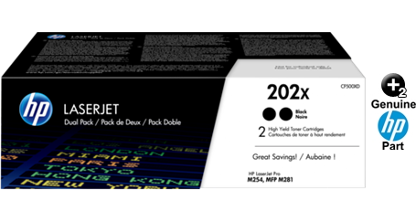 These genuine CF500XD (CF500X, 202X) (3,200 Yield each) OEM HP toners will not void your machine's warranty and are backed by the manufacturer guarantee.
