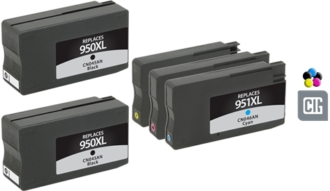 (2) CIG Remanufactured High Yield Black Ink Cartridge (2,300 Yield) - (Alternative for HP CN045AN, 950XL, CN049AN, 950)