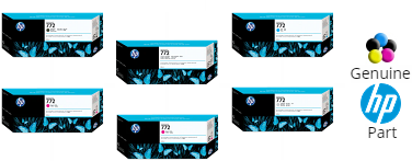 These 772 (CM992A, CM993A, CM994A, CM995A, CM996A, CM997A) (300 ml each) OEM HP ink cartridges will not void your machine's warranty and are backed by the manufacturer guarantee.