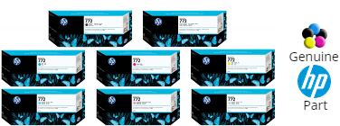 These 772 (CN629A, CN630A, CN631A, CN632A, CN633A, CN634A, CN635A, CN636A) (300 ml each) OEM HP ink cartridges will not void your machine's warranty and are backed by the manufacturer guarantee.