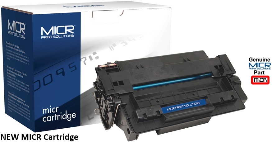 This is a genuine modified new OEM MICR Print Solutions MCR51AM MICR toner cartridge, formulated to print checks in the printers listed below. If you’d like assistance ordering the correct part for your machine, call us at 1.800.388.8218.