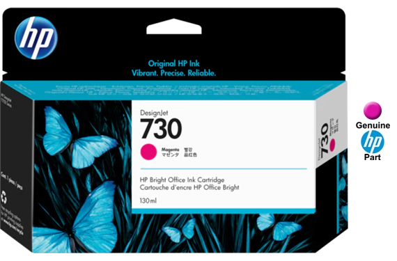 This genuine P2V63A (730) (130 ml) OEM HP ink cartridge will not void your machine's warranty and is backed by the manufacturer guarantee.