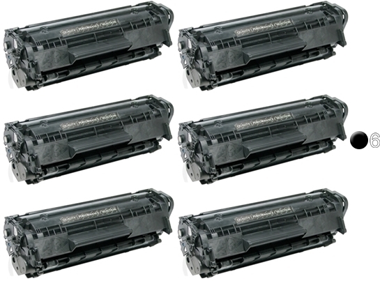 (6) Remanufactured Black Toner Cartridge (2,000 Yield) - (Alternative for HP Q2612A, 12A)