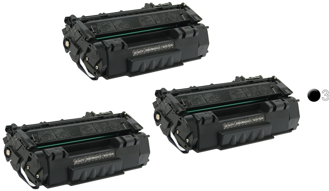 (3) Remanufactured Black Toner Cartridge - (Alternative for HP Q7553A, 53A) (3,000 Yield)