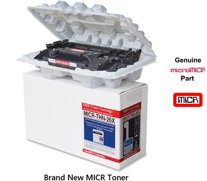 This is a genuine new OEM microMICR THN-26X MICR toner cartridge, formulated to print checks in the printers listed below. If you’d like assistance ordering the correct part for your machine, call us at 1.800.388.8218.