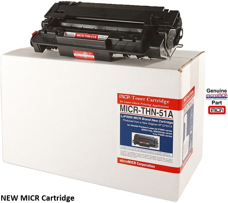 This is a genuine modified new OEM microMICR THN-51A MICR toner cartridge, formulated to print checks in the printers listed below. If you’d like assistance ordering the correct part for your machine, call us at 1.800.388.8218.