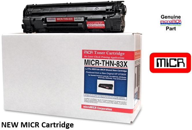 This is a genuine modified new OEM microMICR THN-83X MICR toner cartridge, formulated to print checks in the printers listed below. If you’d like assistance ordering the correct part for your machine, call us at 1.800.388.8218.