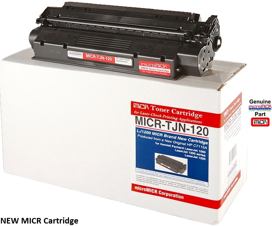 This is a genuine OEM microMICR TJN-120 MICR toner cartridge, formulated to print checks in the printers listed below. If you’d like assistance ordering the correct part for your machine, call us at 1.800.388.8218.