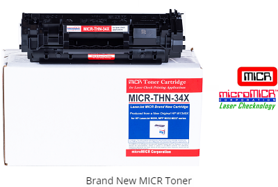 This is a genuine microMICR™ MICR-THN-34X MICR toner cartridge, formulated to print checks in the printers listed below. If you’d like assistance ordering the correct part for your machine, call us at 1.800.388.8218.