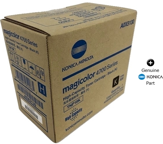 This genuine A0X5130 (TNP18K) OEM Konica Minolta toner cartridge will not void your machine's warranty and is backed by the manufacturer guarantee.