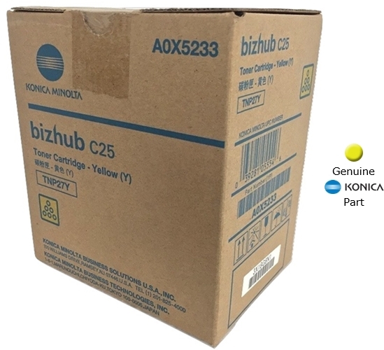 This genuine A0X5233 (TNP27Y) OEM Konica Minolta bizhub toner will not void your machine's warranty and is backed by the manufacturer guarantee.
