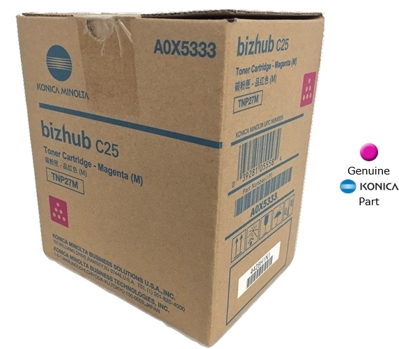 This genuine A0X5333 (TNP27M) OEM Konica Minolta bizhub toner will not void your machine's warranty and is backed by the manufacturer guarantee.