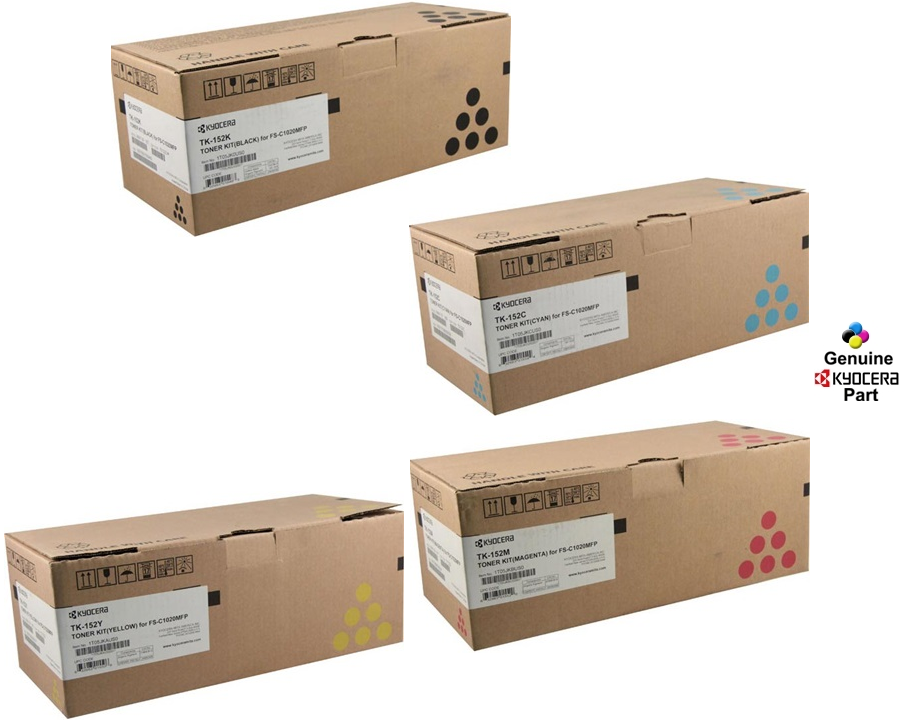 OEM 4-Pack: Black, Cyan, Magenta & Yellow Kyocera FS-C1020 MFP Original Toner Cartridges, TK-152K/ TK-152C/ TK-152M/ TK-152Y