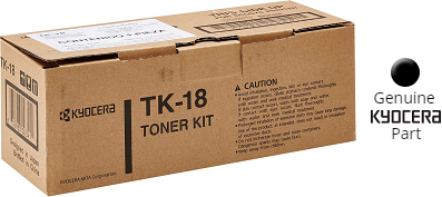 This TK-18 (KM-TK-18, TK-17, TK-18CS, TK-100, 370QB0KM, 37027017, 370QB012) (7,200 Yield) OEM Kyocera toner cartridge will not void your machine's warranty and is backed by the manufacturer guarantee.
