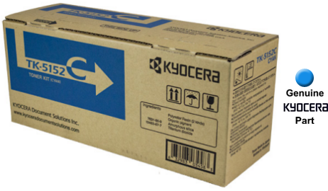 This genuine TK-5152C (1T02NSCUS0) (10,000 Yield) OEM Kyocera toner cartridge will not void your machine's warranty and is backed by the manufacturer guarantee.