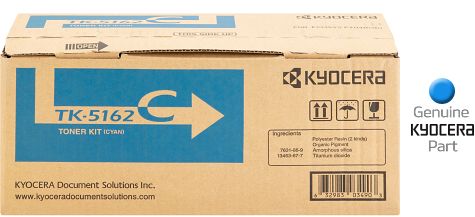 This TK-5162C (1T02NTCUS0) (12,000 Yield) OEM Kyocera toner cartridge will not void your machine's warranty and is backed by the manufacturer guarantee.