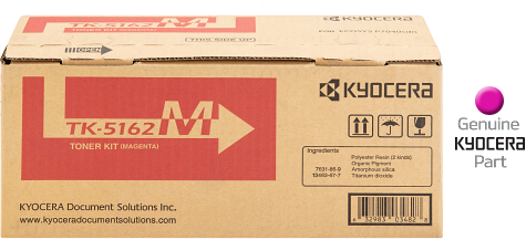 This TK-5162M (1T02NTBUS0) (12,000 Yield) OEM Kyocera toner cartridge will not void your machine's warranty and is backed by the manufacturer guarantee.