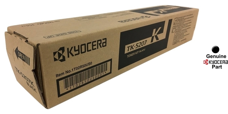 This genuine TK-5207K (TK5207K, 1T02R50US0) OEM Kyocera toner kit will not void your machine's warranty and is backed by the manufacturer guarantee.