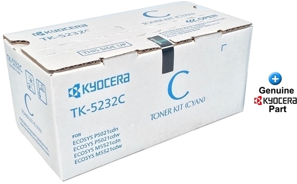 This genuine TK-5232C (1T02R9CUS0) OEM Kyocera toner cartridge will not void your machine's warranty and is backed by the manufacturer guarantee.