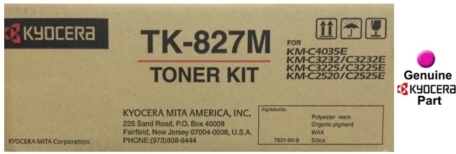 This genuine Kyocera TK-827M OEM toner cartridge will not void your machine's warranty and is backed by the manufacturer guarantee.