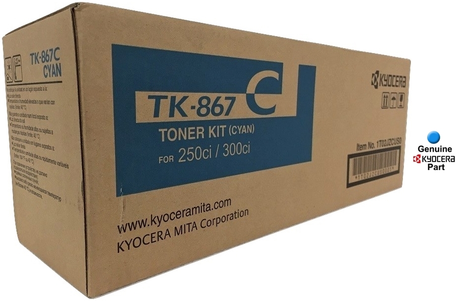 OEM 12,000-Page Kyocera TASKalfa 250ci/ 300ci Original Cyan Toner Cartridge, TK-867C (TK867C, 1T02JZCUS0)