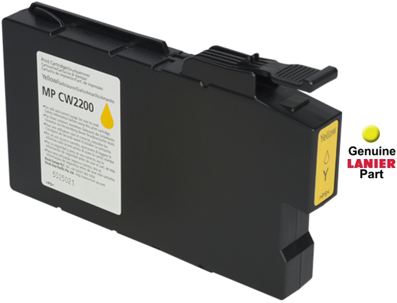 This is a genuine Lanier MP CW2200/ MP CW2201 OEM yellow ink cartridge that's guaranteed by the manufacturer to generate optimum print quality and give you maximum productivity.
