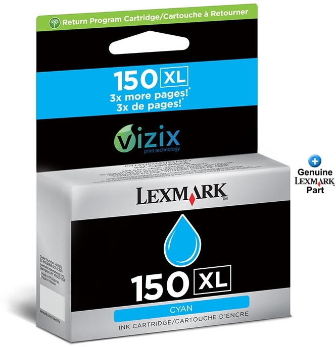 OEM 700-Page Lexmark 150XL Original Cyan High Yield Ink Cartridge, 14N1615