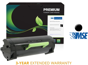 This MSE remanufactured Lexmark 51B1000 (51B00A0) (2,500 Yield) toner cartridge will not void your machine's warranty and is backed by a 100% quality and satisfaction guarantee for three full years. Click here for details.
