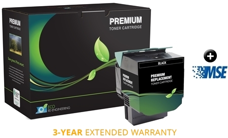 This is a MSE Premium remanufactured high yield black toner cartridge that's formulated for use in the Lexmark printers listed below. With a reputation for innovation and superior quality, MSE is one of the industry’s most renowned brands. MSE’s pioneering Intelligent Re-Engineering™ approach employs patented technologies, proprietary processes, and stringent testing methodologies that result in Your Best Alternative to the OEM. This MSE toner is 100% guaranteed to perform as well as its Lexmark counterpart - at a fraction of the cost.