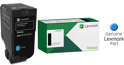 This Genuine Lexmark™ cyan toner cartridge is formulated for use in the printers listed below. Essential to Lexmark™ print system performance, Unison™ Toner's unique formulation consistently delivers outstanding image quality, ensures long-life print system reliability and promotes superior sustainability — all in an innovative shake-free print system.