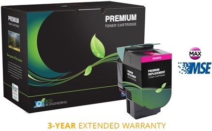 This is a MSE Premium remanufactured extra high yield magenta toner cartridge that's formulated for use in the Lexmark printers listed below. With a reputation for innovation and superior quality, MSE is one of the industry’s most renowned brands. MSE’s pioneering Intelligent Re-Engineering™ approach employs patented technologies, proprietary processes, and stringent testing methodologies that result in Your Best Alternative to the OEM. This MSE toner is 100% guaranteed to perform as well as its Lexmark counterpart - at a fraction of the cost.