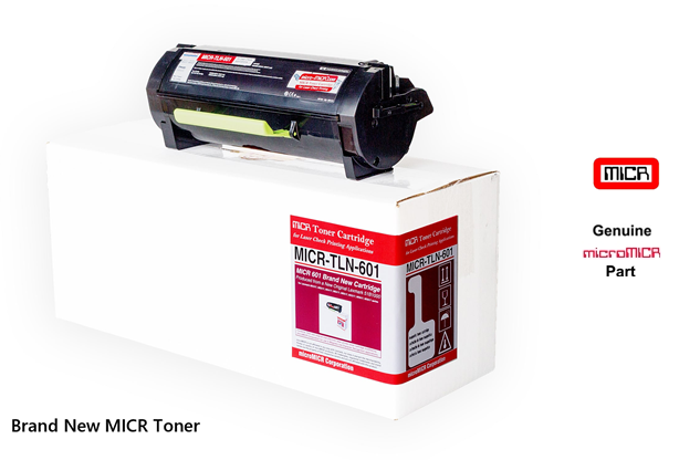 This is a genuine microMICR TLN-601 MICR toner cartridge, formulated to print checks in the printers listed below. If you’d like assistance ordering the correct part for your machine, call us at 1.800.388.8218.