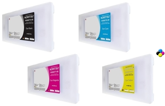 Compatible 4-Pack: Black, Cyan, Magenta, Yellow 500ml NORITSU D701/ D703/ D1005 Ink Cartridges, H086075-00/ H086076-00/ H086077-00/ H086078-00