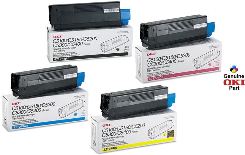 These are genuine OKI C5100/ C5150/ C5200/ C5300/ C5400/ C5510 OEM high capacity toner cartridges that are guaranteed by the manufacturer to generate optimum print quality and give you maximum productivity.