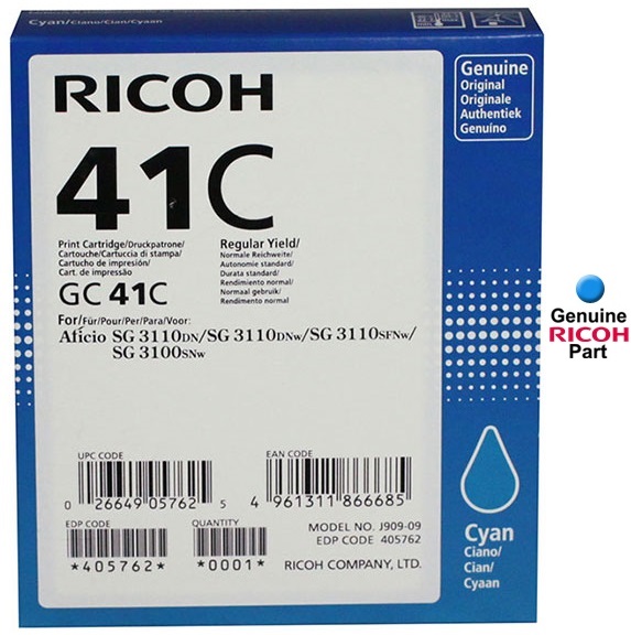 This is a genuine Ricoh Aficio SG 3100SNw/ 3110DN/ 3110DNw/ 3110SFNw/ 7100DN OEM cyan ink cartridge that's guaranteed by the manufacturer to generate optimum print quality and give you maximum productivity.