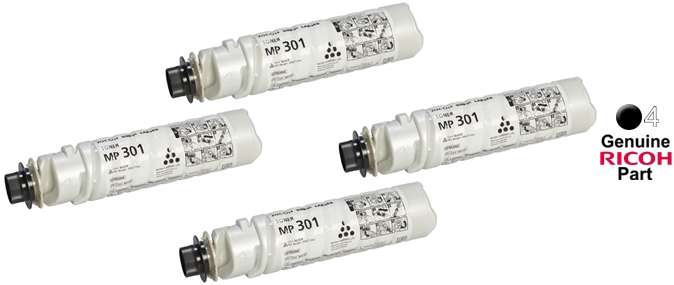 These are genuine Ricoh Aficio MP 301SPF OEM black toner cartridges that are guaranteed by the manufacturer to generate optimum print quality and give you maximum productivity.