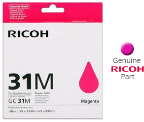 This GC 31M (405690) (1,560 Yield) OEM Ricoh ink cartridge will not void your machine's warranty and is backed by the manufacturer guarantee.