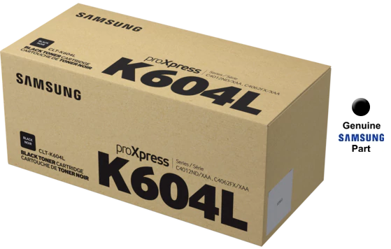 This genuine CLT-K604L (SU215A, CLT-K604L/XAA) (15,000 Yield) OEM Samsung toner will not void your machine's warranty and is backed by the manufacturer guarantee.