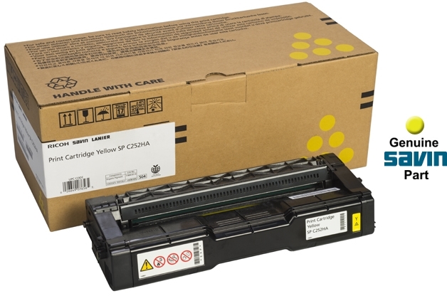 This is a genuine Savin SP C252DN/ SP C252SF/ SP C262DNw/ SP C262SFNw OEM all-in-one yellow print (toner) cartridge that's guaranteed by the manufacturer to generate optimum print quality and give you maximum productivity.