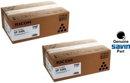 OEM 2-pack: 3,500-page Savin SP 330DN/ SP 330SFN Original Black Toner Cartridge, 408288 (SP 330L)