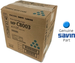 This is a genuine Savin MP C6503/ MP C8003 OEM cyan print (toner) cartridge that's guaranteed by the manufacturer to generate optimum print quality and give you maximum productivity.