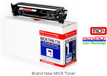 This is a genuine modified new OEM microMICR THN-17A MICR toner cartridge, formulated to print checks in the printers listed below. If you’d like assistance ordering the correct part for your machine, call us at 1.800.388.8218.