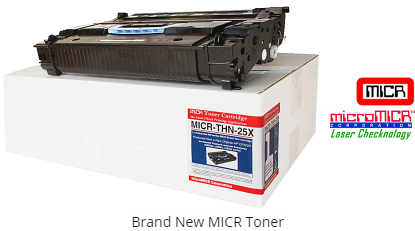 This is a genuine new OEM microMICR MICR-THN-25X MICR toner cartridge, formulated to print checks in the printers listed below. If you'd like assistance ordering the correct part for your machine, call us at 1.800.388.8218.