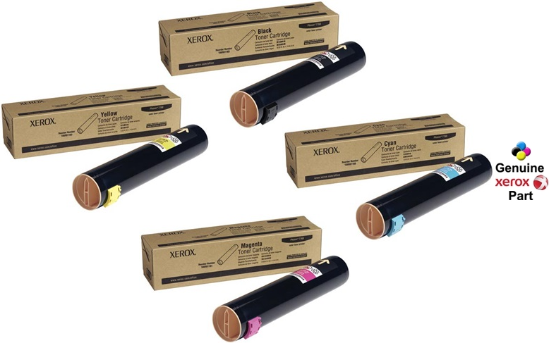 OEM 4-Pack: Black, Cyan, Magenta & Yellow Xerox Phaser 7760 Original Toner Cartridges, 106R01163/ 106R01160/ 106R01161/ 106R01162